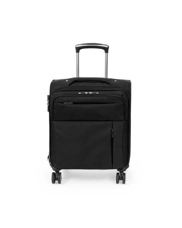 Trolley da lavoro ad apertura totale con 4 ruote telescopiche rifinite in nylon. In colori sobri, con maniglia esterna rinforzata in tinta e pratiche tasche sul davanti. Dotato di targhetta con nome, serratura di sicurezza a combinazione numerica e cerniere in tinta, include anche uno scomparto interno imbottito per laptop fino a 15" e numerose tasche interne. - Lunghezza: 38 cm - Larghezza: 25 cm - Peso: 3400 gr