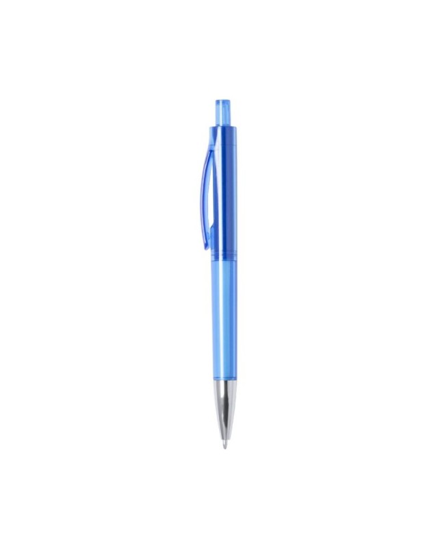 Penna a pulsante dal design originale trasparente e pieno, in colori vivaci e con finitura liscia. Con clip curva originale abbinata e punta con finitura lucida. Con cartuccia jumbo e inchiostro blu. - Diametro: 1.1 cm - Peso: 10 gr