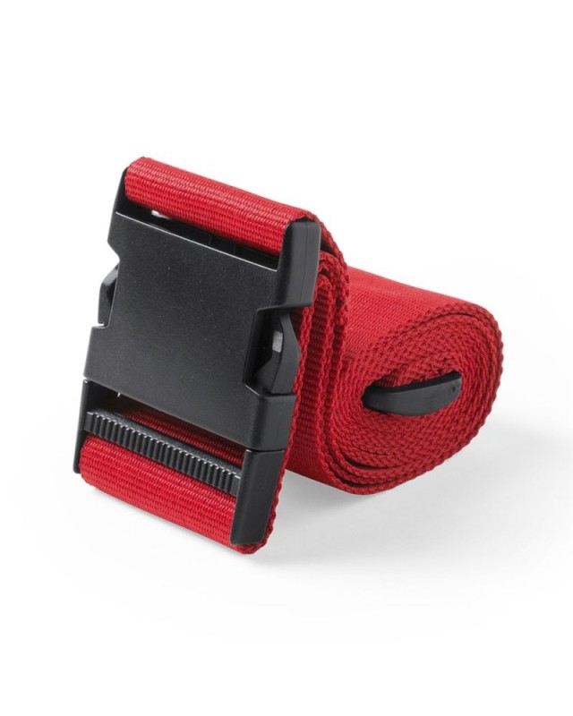 Cinghia per bagagli da 180 cm in poliestere resistente con finitura colorata. Con chiusura a scatto e accessorio di regolazione. - Lunghezza: 180 cm - Peso: 90 gr