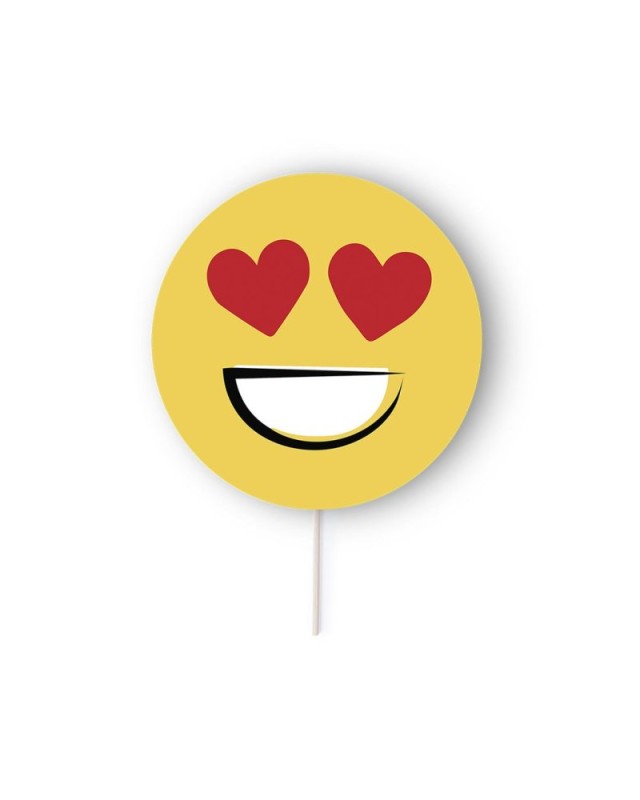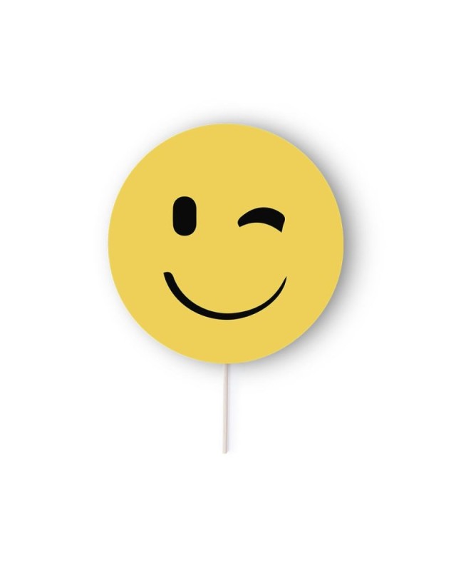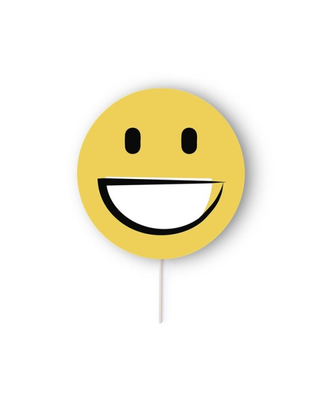 Selfie Pai Pai con divertenti disegni emoji in giallo brillante. In carta pesante con manico in legno. Disponibile nei disegni del cuore, degli occhiali da sole, dellocchiolino e del sorriso. - Lunghezza: 18 cm - Peso: 8.5 gr