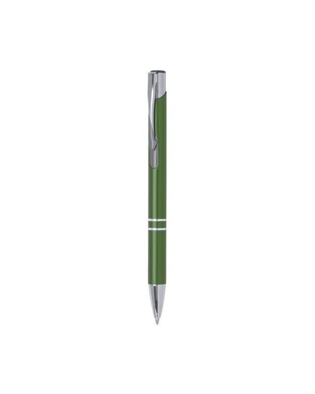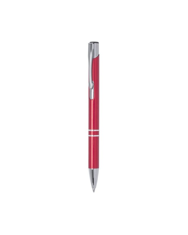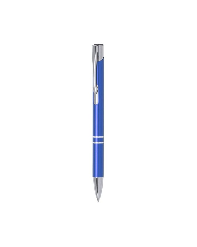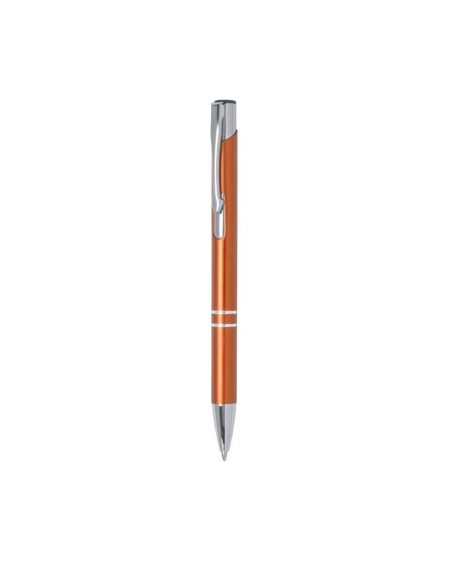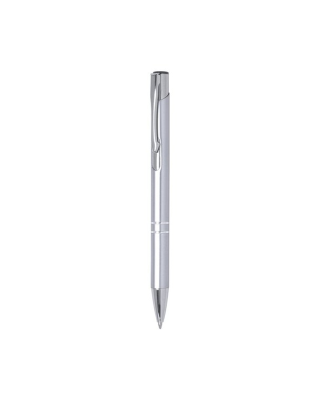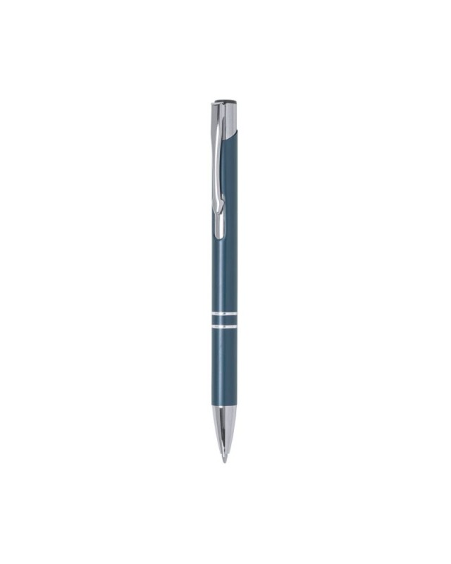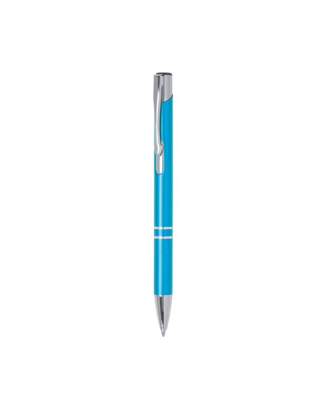 Originale penna con meccanismo a pulsante dallelegante design bicolore. Fusto in alluminio sagomato con finitura liscia in diversi colori. Clip, anelli e punta originali in argento. Con cartuccia jumbo e refil blu. - Diametro: 1 cm - Peso: 14 gr