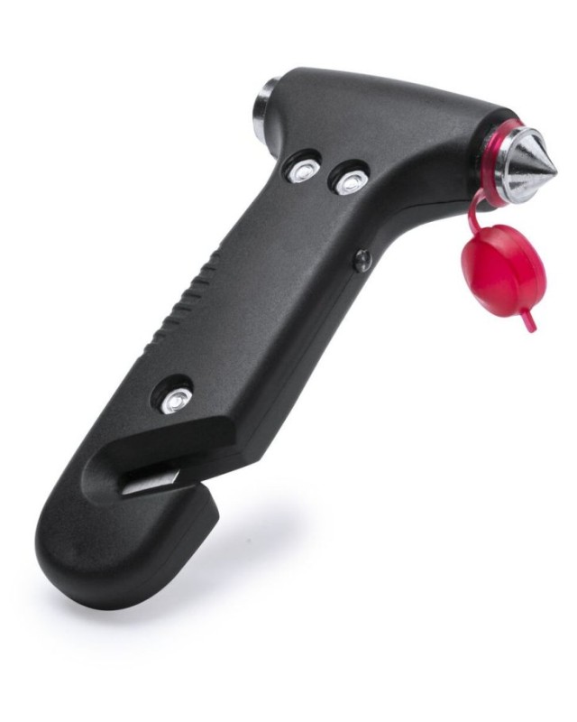 Martello di emergenza multifunzione a LED. Con torcia a led a luce bianca, martello frangivetro e lama tagliacinture. Presentato in unattraente scatola di design. - Lunghezza: 7.6 cm - Larghezza: 2.4 cm - Peso: 140 gr