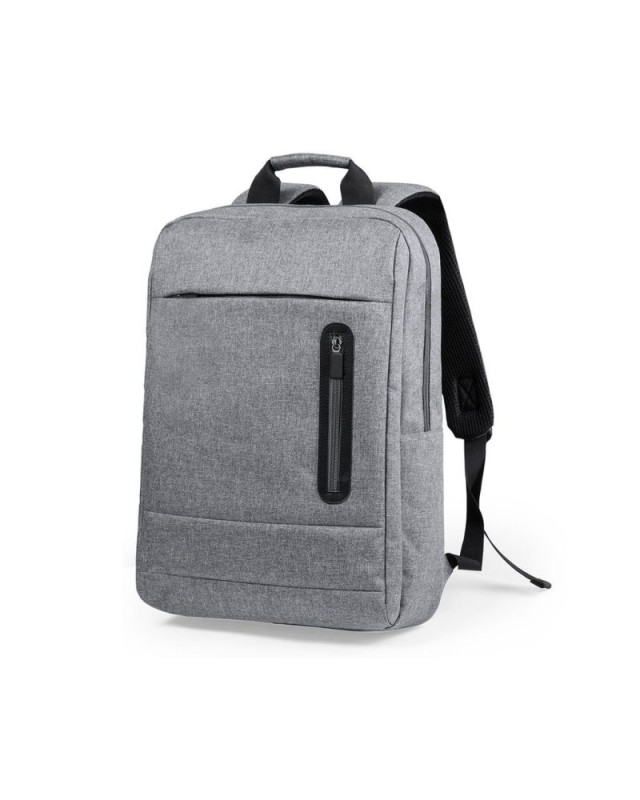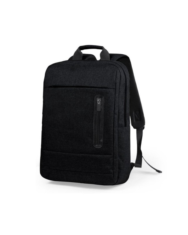 Zaino in resistente nylon 600D. Originale design rettangolare con chiusura a zip sia per la tasca principale che per quella anteriore. Con imbottitura ergonomica su schiena e spallacci, include uno scomparto imbottito per laptop fino a 15". Disponibile in due eleganti colori. - Lunghezza: 30 cm - Larghezza: 14 cm - Peso: 580 gr