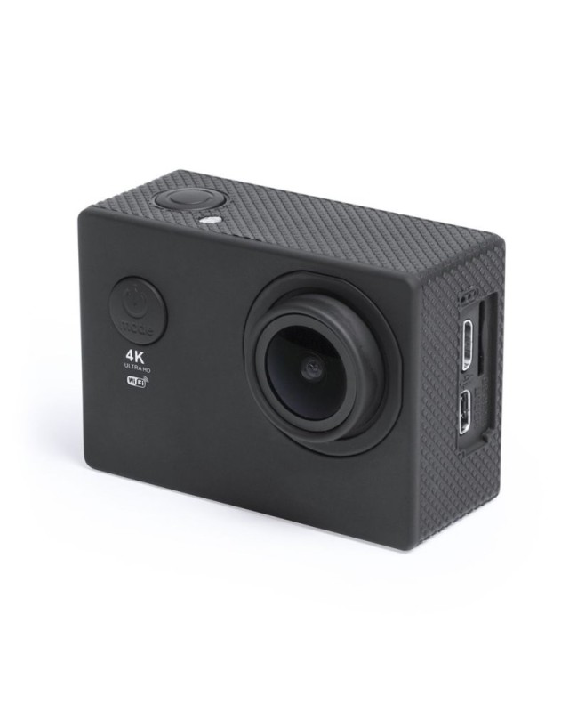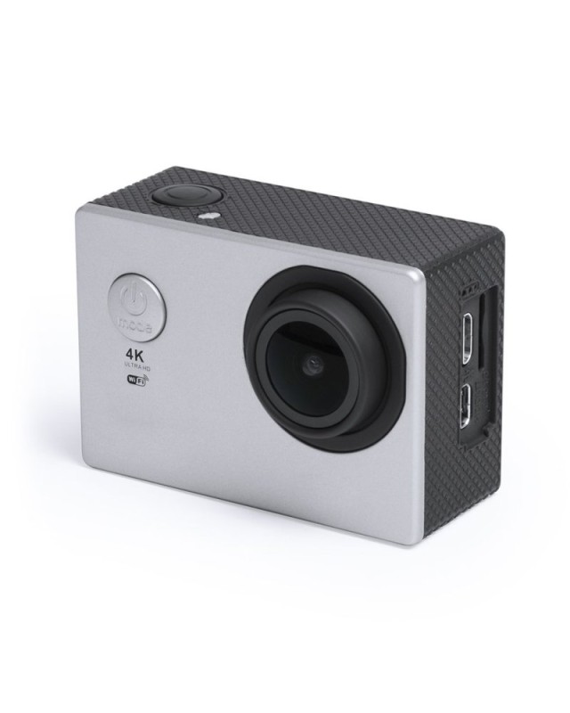 Telecamera sportiva di alta qualità per lacquisizione di video 4K HD con un design compatto e robusto, appositamente progettato per un uso intensivo. Include una custodia impermeabile da 30 metri e una moltitudine di accessori per la regolazione nel casco, nel manubrio o nella cintura, nonché cinghie regolabili per la testa e il busto o un adattatore girevole a 360º. La versatilità e la resistenza di questa videocamera sportiva la rendono il gadget perfetto per catturare, con una qualità eccezionale, qualsiasi attività sportiva. Con funzione di videocamera Full HD 1080p, slot per schede micro SD fino a 64 GB di capacità, schermo LCD da 2 pollici, sistema multilingue e ricaricabile tramite cavo mini USB -incluso-. Presentata in una scatola dal design accattivante. - Lunghezza: 16 cm - Larghezza: 6 cm - Peso: 350 gr