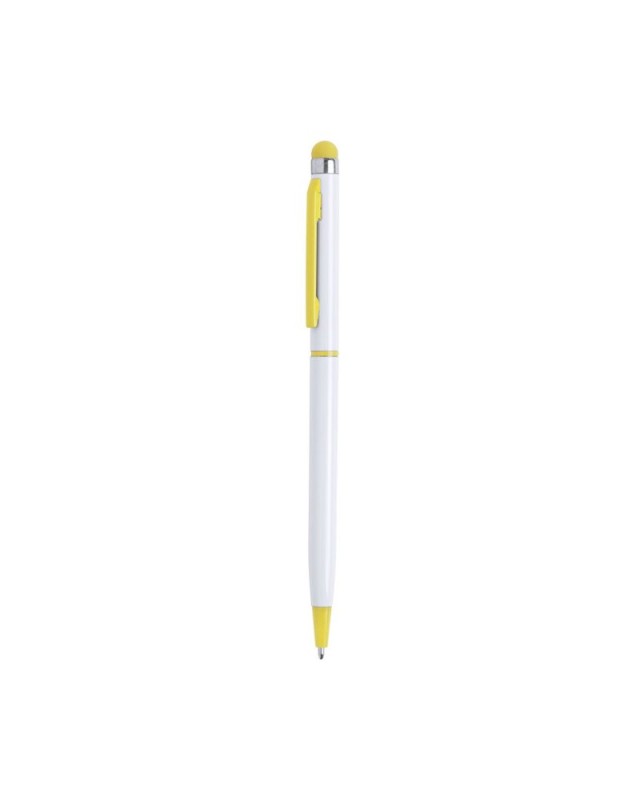 Penna con meccanismo girevole, fusto in alluminio bianco e accessori in una vasta gamma di colori vivaci. Con clip sagomata e inchiostro blu. - Diametro: 0.7 cm - Peso: 11 gr