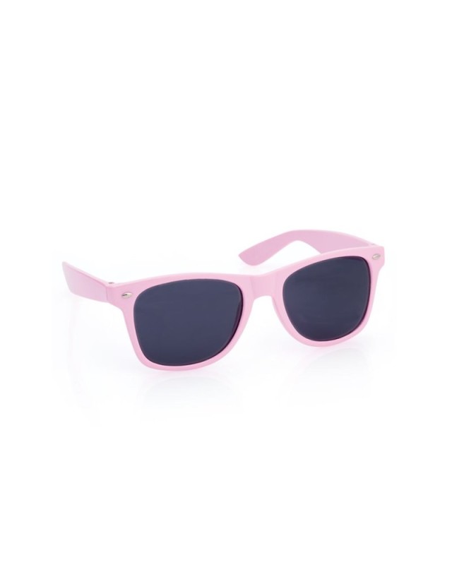 Occhiali da sole con protezione UV400. Montatura robusta dal design elegante e dalla finitura lucida, in colori divertenti e variegati. Le lenti sono nere per garantire lo stile. Presentati in un sacchetto individuale riciclato. - Peso: 26 gr