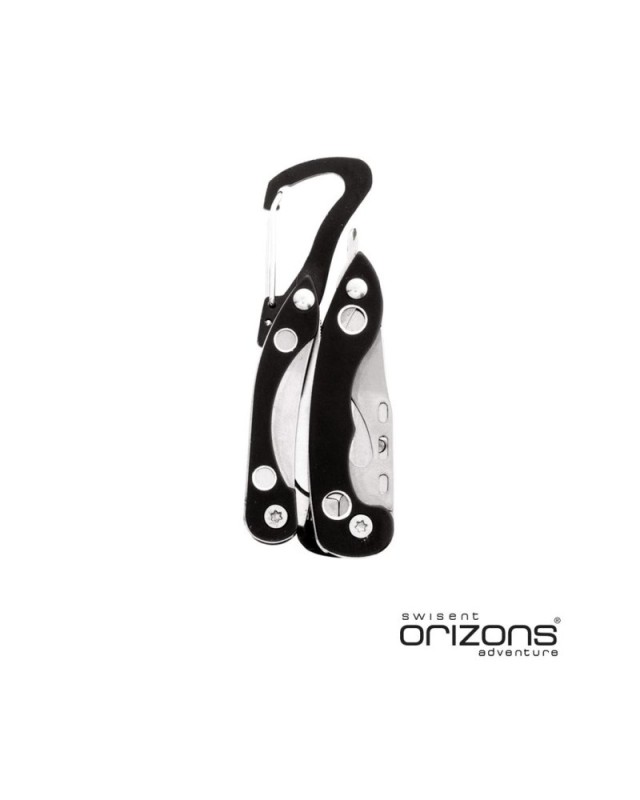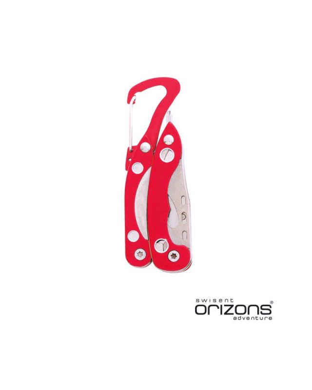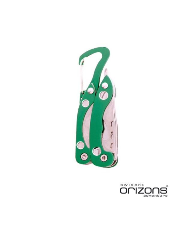 Multiutensile by Orizons con accessori in acciaio inox a 6 funzioni e manico in alluminio dai colori vivaci. Con pinze, coltellino, apriscatole, cacciavite a lama piatta con funzione di apribottiglie, cacciavite a croce e clip a moschettone. Presentato in una scatola dal design accattivante con logo del marchio. - Lunghezza: 2.8 cm - Larghezza: 1.5 cm - Peso: 77 gr