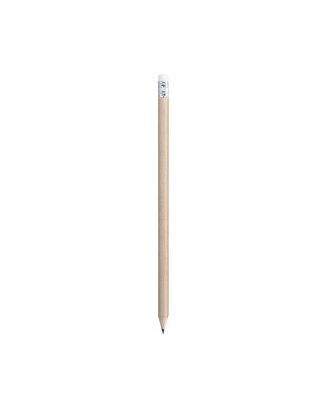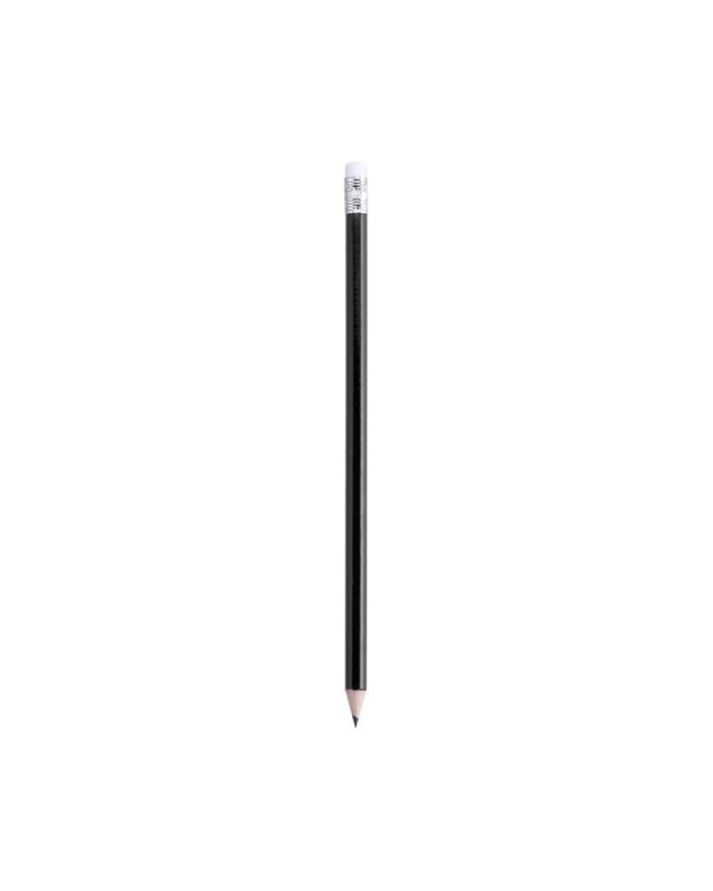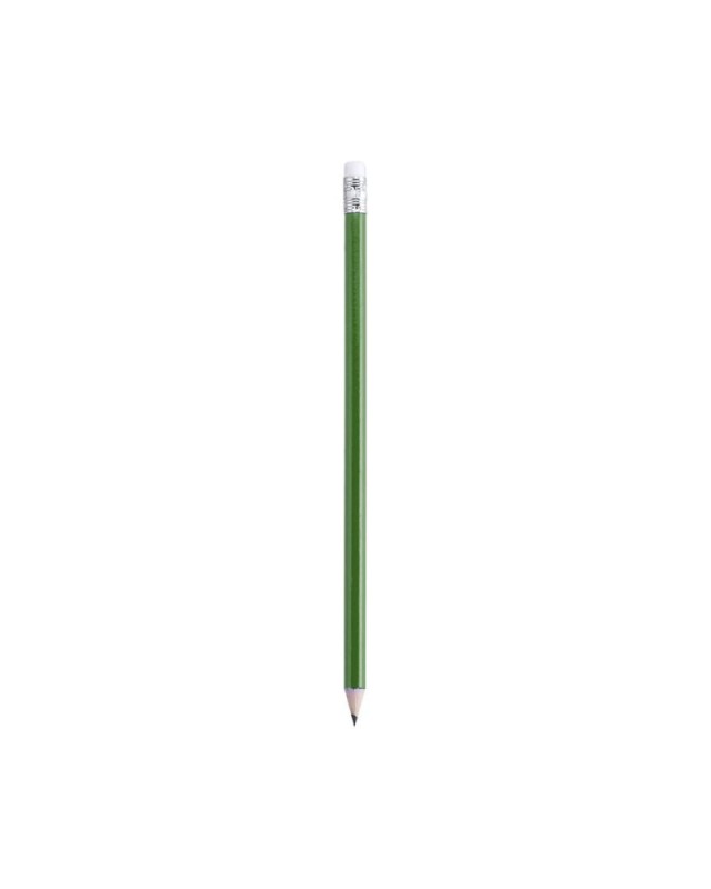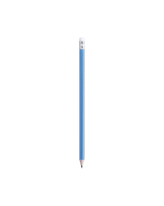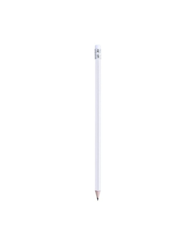 Matita in legno con finitura lucida. Corpo rotondo e gomma bianca. Disponibile in vari colori. Mina nera e punta affilata. - Diametro: 0.7 cm - Peso: 5 gr