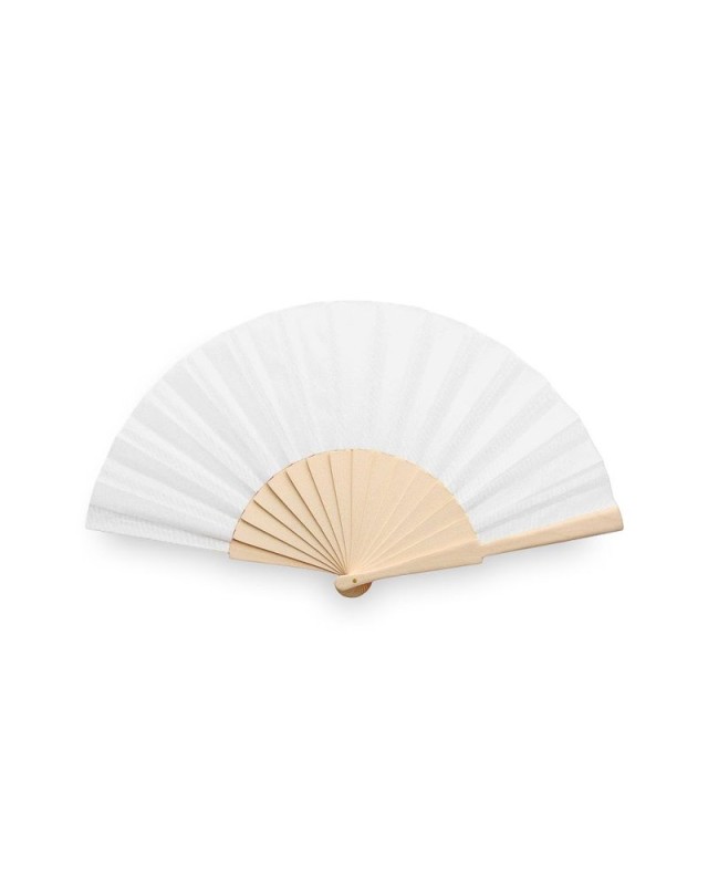 Ventaglio della linea natura con resistente tessuto in poliestere 190T. Stecche in legno resistente. Disponibile in unampia gamma di colori. Presentato in una scatola di cartone individuale. - Lunghezza: 42.5 cm - Peso: 41 gr