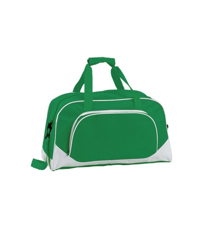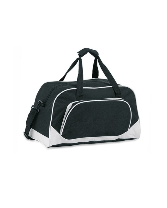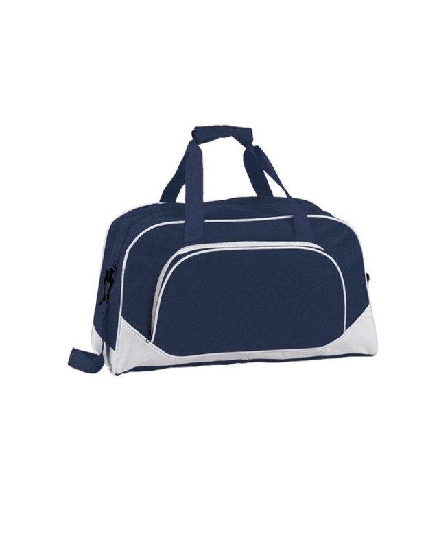 Borsone multiuso in resistente poliestere 600D con design casual bicolore in unampia gamma di colori, con profili rinforzati e base bianca. Scomparto principale e tasca esterna con chiusura a zip in tinta. Manici in robusto nylon coordinati con chiusura a velcro e tracolla regolabile con doppia chiusura a moschettone. - Lunghezza: 42 cm - Larghezza: 20 cm - Peso: 310 gr