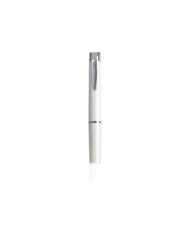 Torcia a LED con fusto in colori sobri. Con meccanismo di attivazione a clip in metallo. - Diametro: 1.4 cm - Peso: 15 gr