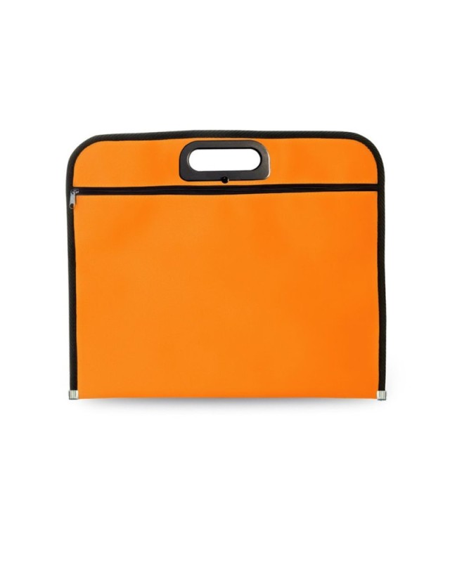 Portadocumenti con chiusura a zip in morbido poliestere 600D dai colori vivaci. Con maniglie per il trasporto dalloriginale design fustellato con rinforzo e bordatura in nero con piastra di rinforzo in metallo sulla base. - Lunghezza: 38 cm - Peso: 100 gr