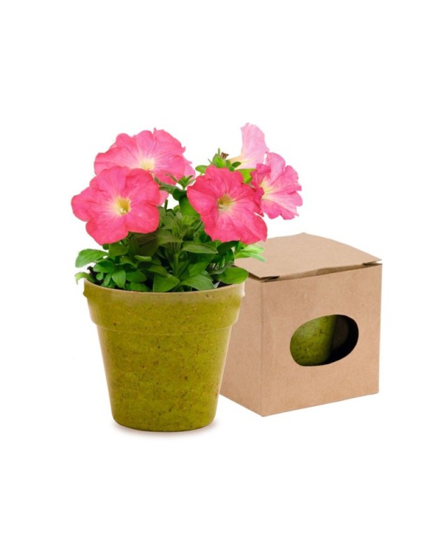 Vasi con semi di Petunia, con vasi della linea naturale e in vari colori. Con 5-8 semi e bustina di terreno di coltura. - Diametro: 6.5 cm - Peso: 45 gr