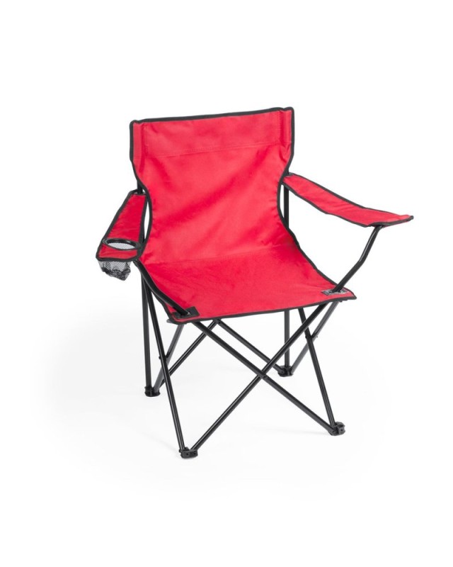 Sedia pieghevole con robusta struttura in tubolare metallico. In resistente poliestere 600D in una gamma di colori vivaci. Con cuciture rinforzate, braccioli e tasca in rete integrata per le bevande. Con rinforzi in gomma antiscivolo sulle gambe e presentata in una borsa individuale con coulisse di chiusura, regolazione e tracolla. - Lunghezza: 83 cm - Larghezza: 49 cm - Peso: 1700 gr