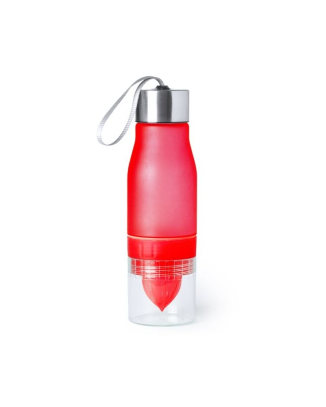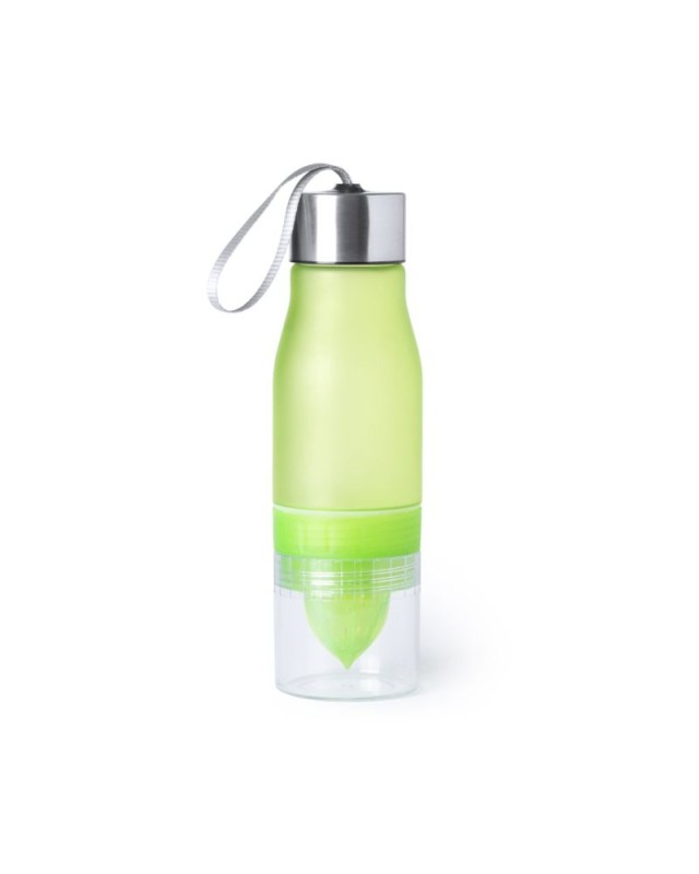 Bidone originale con capacità di 700 ml, realizzata in materiale tritan resistente al calore e senza BPA. Include una base con spremiagrumi per aromatizzare lacqua. Con dispenser, tappo a vite e cinghia di trasporto. Disponibile in una vasta gamma di colori e presentato in una scatola individuale - Diametro: 7.3 cm - Peso: 188 gr