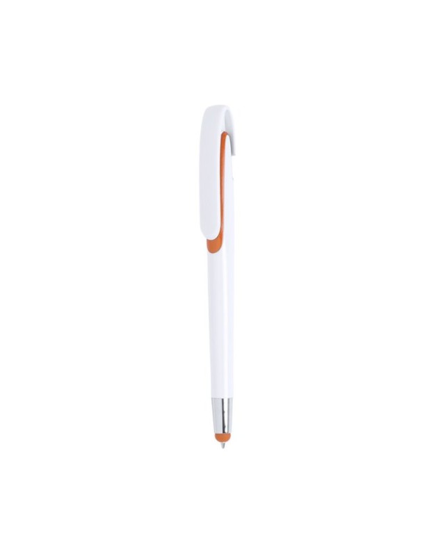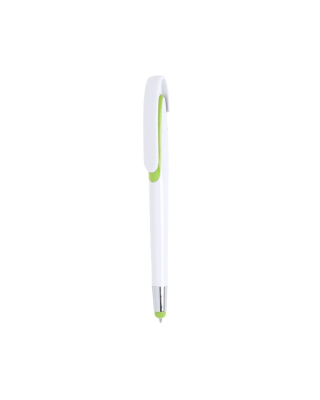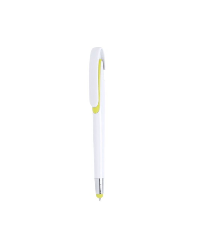 Penna touch con meccanismo a pulsante, fusto con finitura lucida bianca e accessori in unampia gamma di colori vivaci. Con maxi clip e inchiostro blu. - Diametro: 1.1 cm - Peso: 11.5 gr
