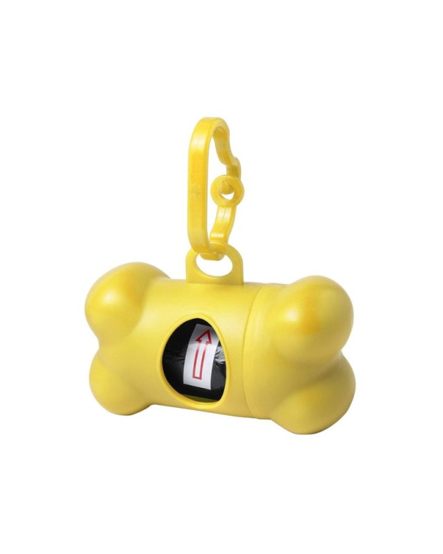 Distributore di sacchetti per animali domestici con resistente corpo in colori vivaci e design a forma di osso. Con clip a moschettone abbinata e 15 sacchetti inclusi. - Lunghezza: 8.2 cm - Larghezza: 4.1 cm - Peso: 39 gr