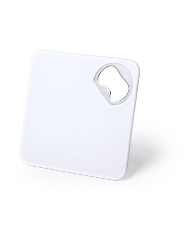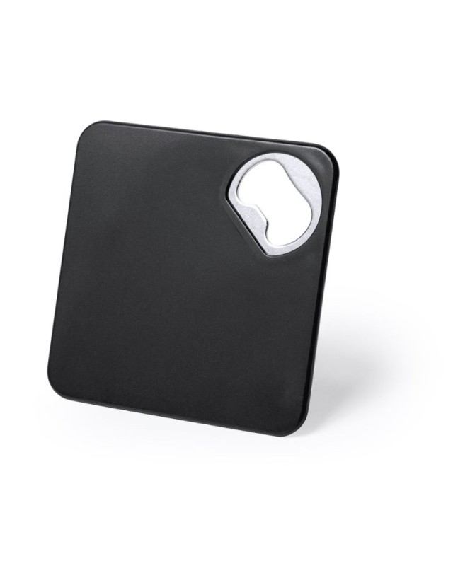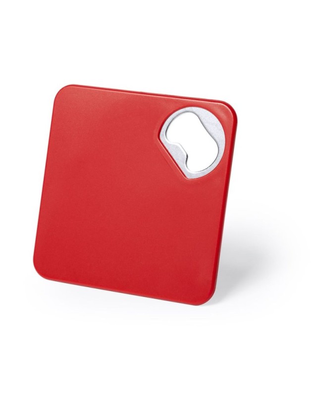 Originale sottobicchiere con apribottiglia in metallo integrato in una ampia varietà di colori vivaci. Con superficie antiscivolo sulla base. - Lunghezza: 8.2 cm - Larghezza: 0.4 cm - Peso: 20 gr