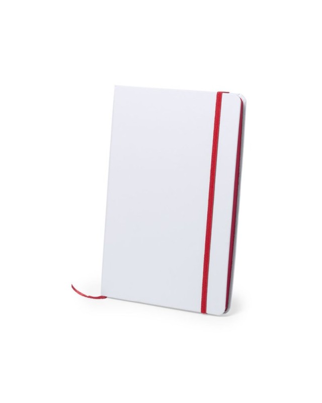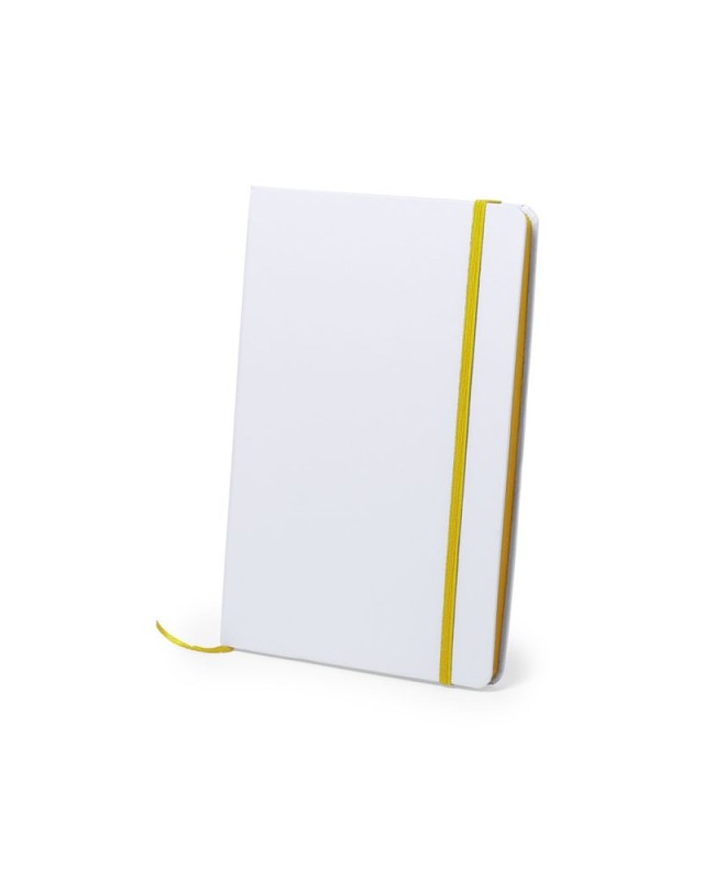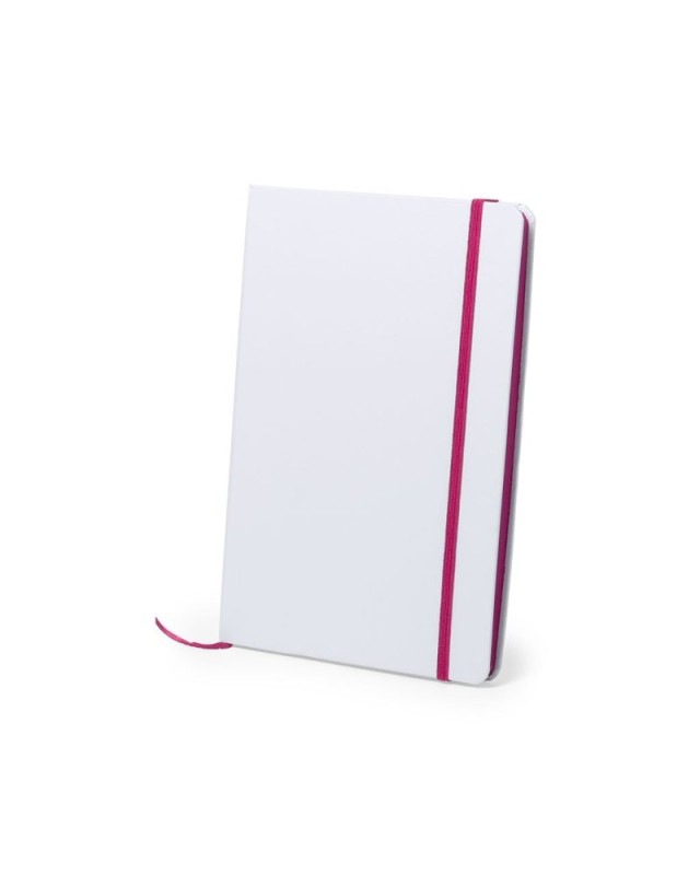 Block notes con copertina rigida soft-touch di colore bianco. Di 100 fogli a tinta unita con dorso in colori divertenti, rilegatura elastica e segnalibro in tessuto coordinati. - Lunghezza: 14.7 cm - Larghezza: 1.5 cm - Peso: 275 gr