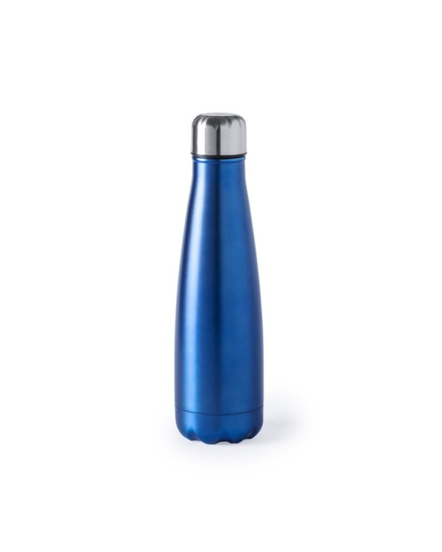 Borraccia in acciaio inox da 630 ml. Con tappo di sicurezza a vite. Con finitura opaca in una ampia varietà di colori vivaci. Confezionata singolarmente in una scatola. - Diametro: 7 cm - Peso: 160 gr