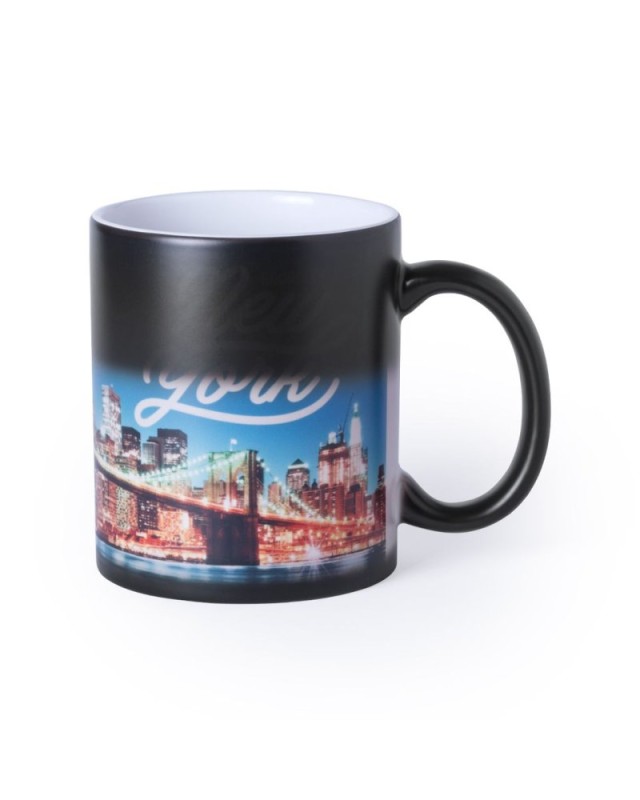 Tazza in ceramica della capacità di 350 ml con esterno nero e interno bianco. Appositamente progettata per la stampa in sublimazione. Confezionata in una scatola individuale.Manuale di istruzioni disponibile in spagnolo e inglese. - Diametro: 8.2 cm - Peso: 320 gr