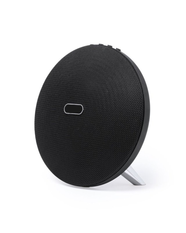 Altoparlante con connessione Bluetooth dallelegante finitura nera con accessori argentati e dalloriginale design circolare. Offre una potenza di 8W, ha la funzione vivavoce, uno slot per schede micro SD fino a 32 GB di capacità e ingresso di linea ausiliario tramite connessione jack da 3,5 mm. Compatibile con iOS e Android, include un cavo di ricarica mini USB e un cavo jack ausiliario da 3,5 mm ed è confezionato in unattraente scatola di design. Con piedini in gomma antiscivolo sulla base. - Lunghezza: 17 cm - Larghezza: 7.5 cm - Peso: 445 gr