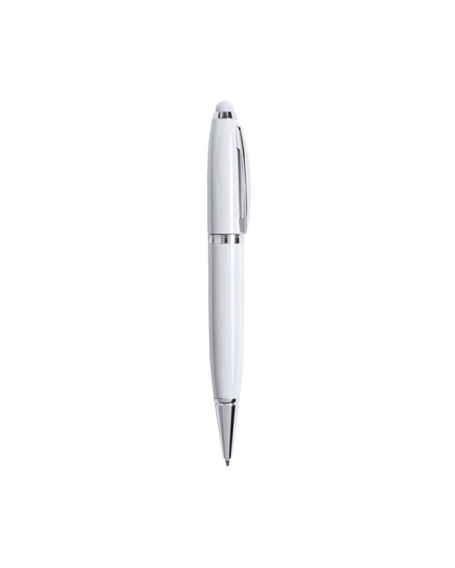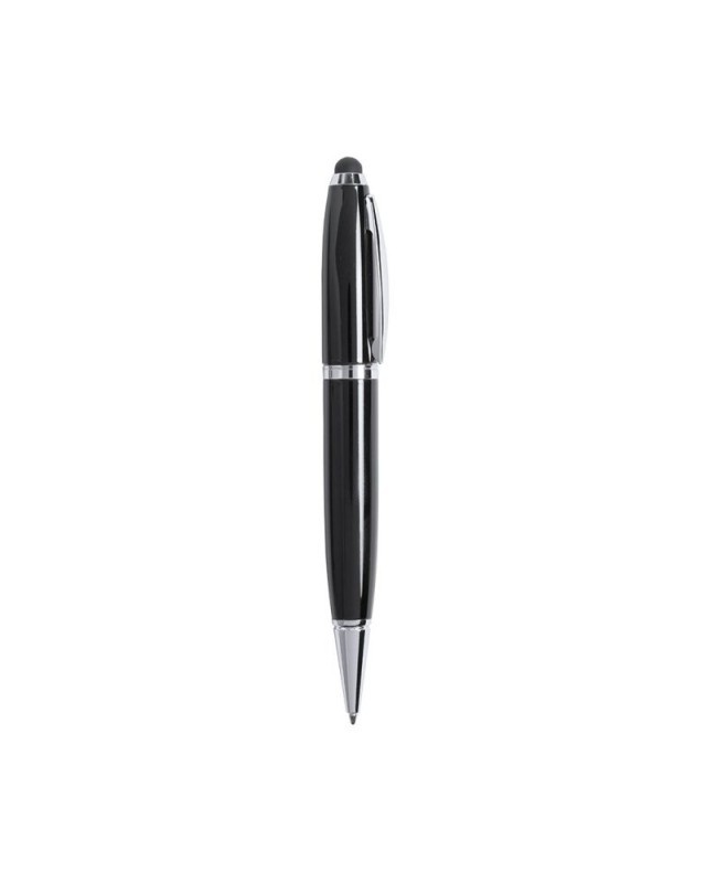 Penna tecnologica multifunzionale dai colori sobri, con chiavetta USB da 16 GB integrata nel cappuccio e touch in gomma morbida coordinato. Finitura metallica lucida, fusto con apertura a rotazione e inchiostro blu. Presentata in unelegante scatola di cartone bianco con chiusura magnetica e morbida schiuma fustellata. - Diametro: 1.4 cm - Peso: 28 gr