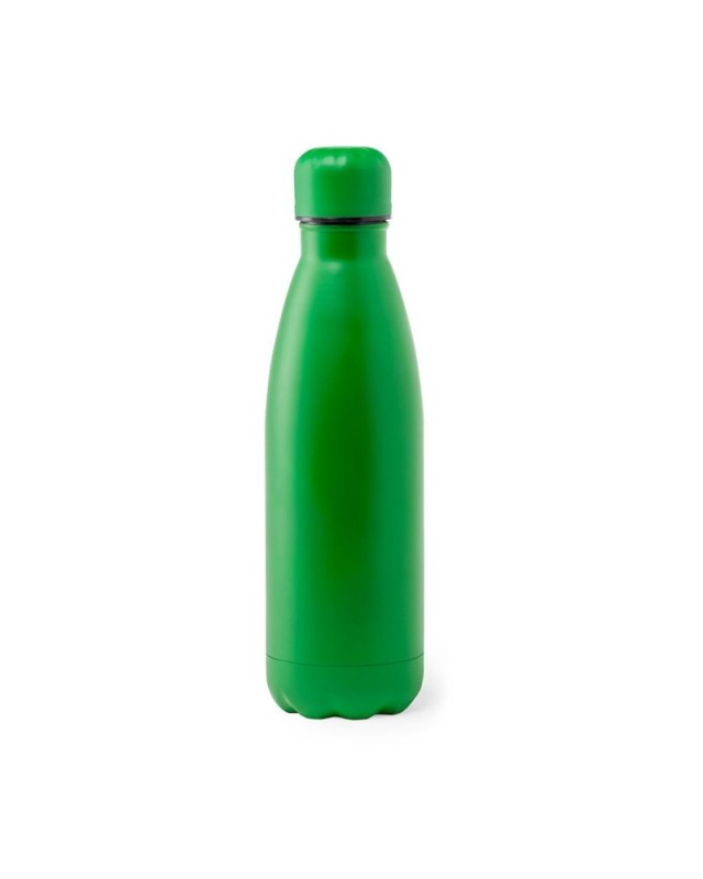 Borraccia in acciaio inox da 790 ml. Con tappo a vite di sicurezza. Finitura originale completamente opaca in vari e vivaci colori. Presentata in una scatola dal design accattivante. - Diametro: 7.4 cm - Peso: 175 gr