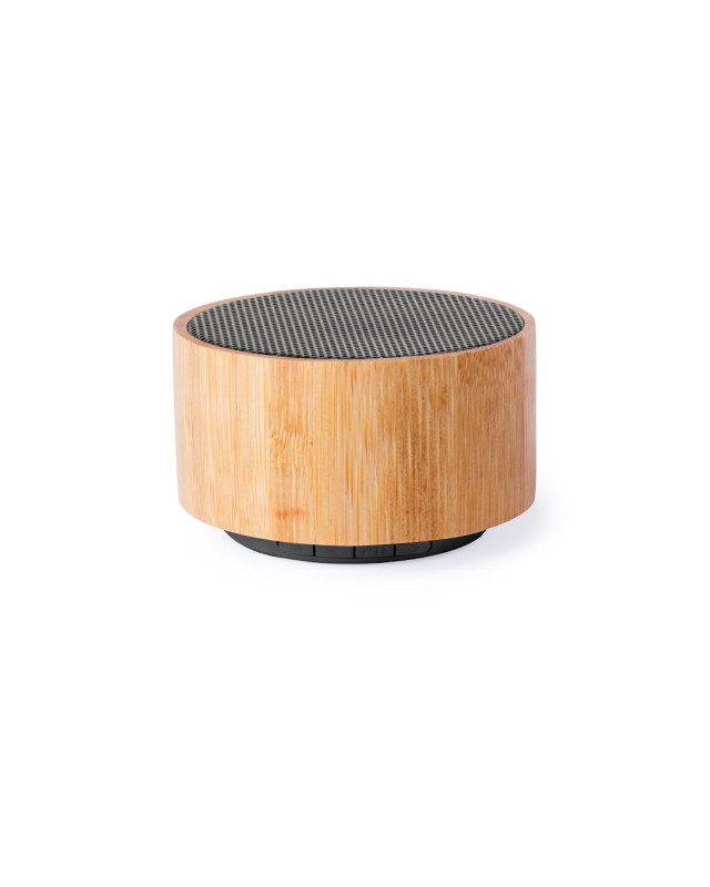Altoparlante compatto con corpo in bambù e connessione Bluetooth. Con potenza di 3W, funzione vivavoce, radio FM, slot per schede mini SD e base antiscivolo. Ricaricabile tramite cavo USB -incluso- e presentato in una scatola dal design accattivante. - Diametro: 7.3 cm - Peso: 118 gr