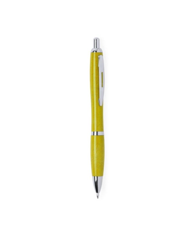 Penna della linea natura con fusto in fibra di grano per promuovere luso di materie prime naturali e ridurre le emissioni inquinanti. Meccanismo a pulsante, con dettagli cromati e clip fustellata, cartuccia jumbo e inchiostro blu. Disponibile in unampia gamma di colori. - Diametro: 1.3 cm - Peso: 11 gr