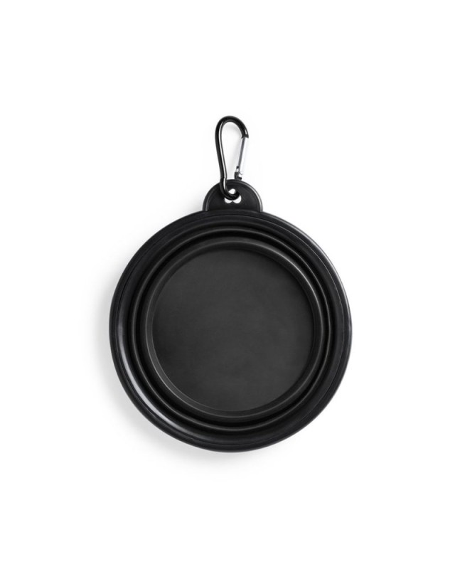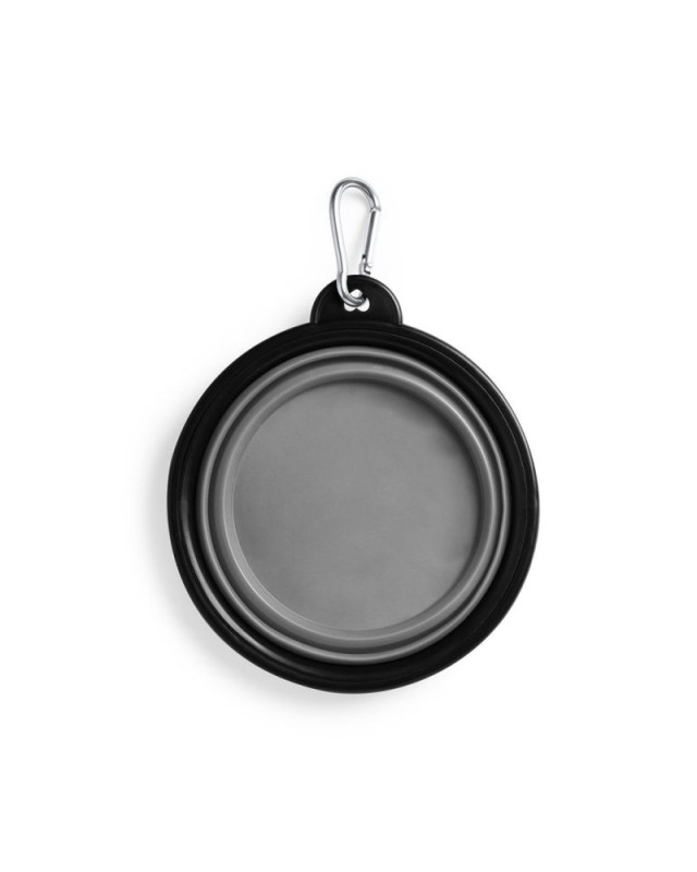 Ciotola pieghevole per animali domestici in resistente materiale TPR. Progettata per solidi e liquidi, con capacità di 450 ml e moschettone in metallo abbinato. Disponibile in unampia gamma di colori. - Diametro: 12.9 cm - Peso: 58 gr