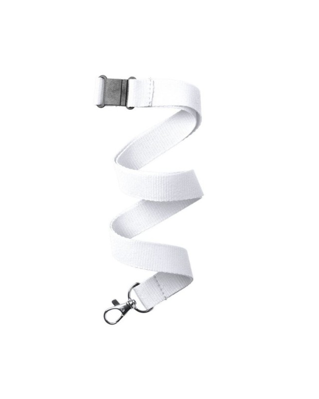 Lanyard in resistente poliestere, con attacco di sicurezza al collo e moschettone in metallo. Disponibile in una gamma di colori vivaci. - Lunghezza: 2 cm - Peso: 11 gr