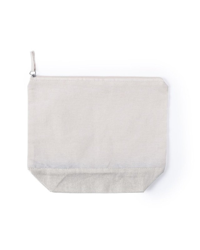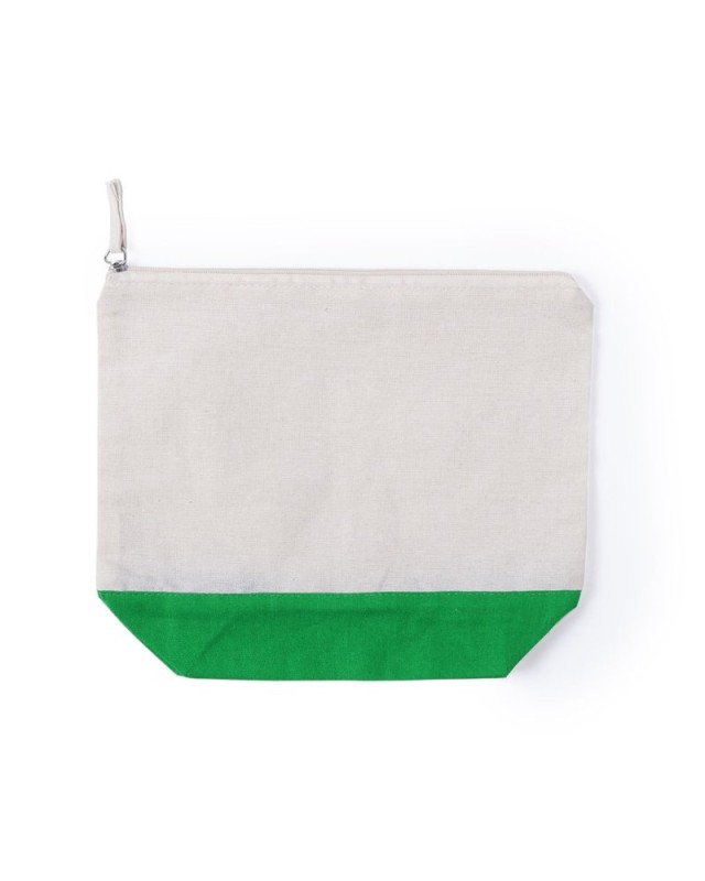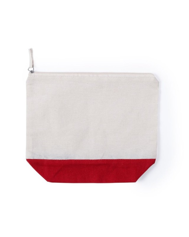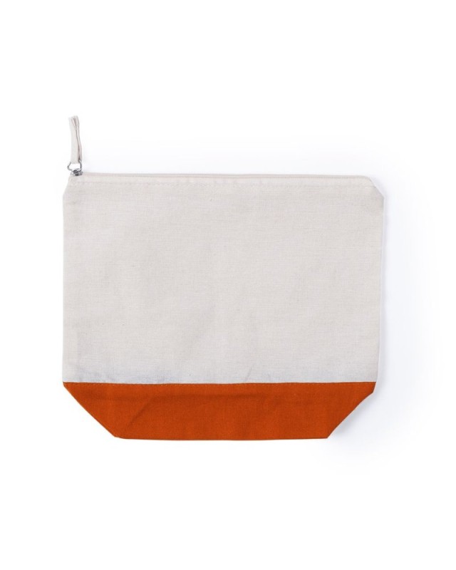 Beauty Case multiuso in materiale 100% cotone da 140 g/m2. Design bicolore, con corpo in cotone ecru e base in unampia gamma di colori. Cerniera abbinata e tiretto cromato. - Lunghezza: 23 cm - Larghezza: 8 cm - Peso: 20 gr