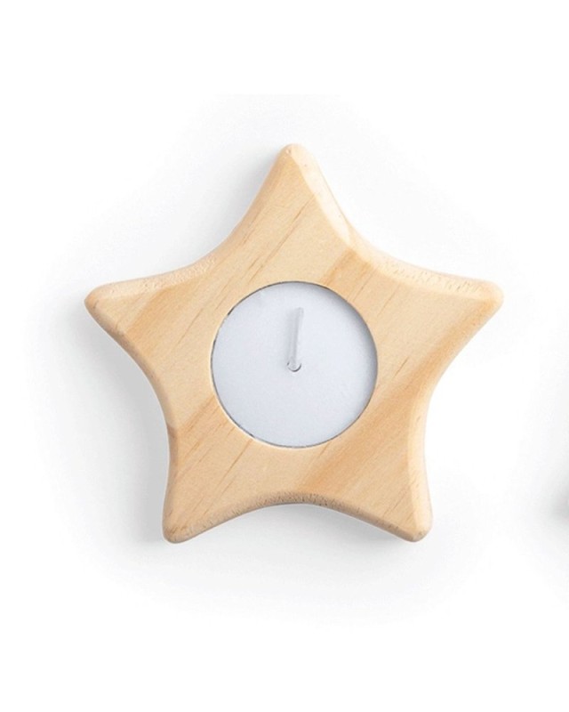 Candela natalizia in legno di pino con originali disegni di stelle e alberi. Presentata singolarmente in una scatola bianca. - Peso: 37 gr