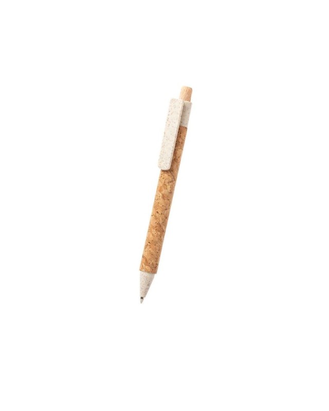 Penna della linea natura con fusto in sughero naturale. Clip, punta e pulsante in fibra di grano, per favorire lutilizzo di materie prime naturali e ridurre le emissioni inquinanti. Con clip appositamente studiata per la tampografia. Con meccanismo a pulsante e inchiostro blu. - Diametro: 1 cm - Peso: 6 gr