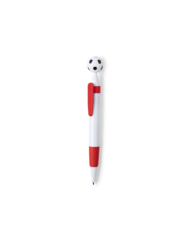 Penna a sfera per la maggior parte dei fan del calcio con dettagli a forma di palla. Con meccanismo a pulsante e design casual bicolore. Con un corpo bianco, con clip e maniglia coordinata, in una vasta gamma di colori. Ampia superficie di stampa e in inchiostro blu. - Diametro: 2 cm - Peso: 10.5 gr