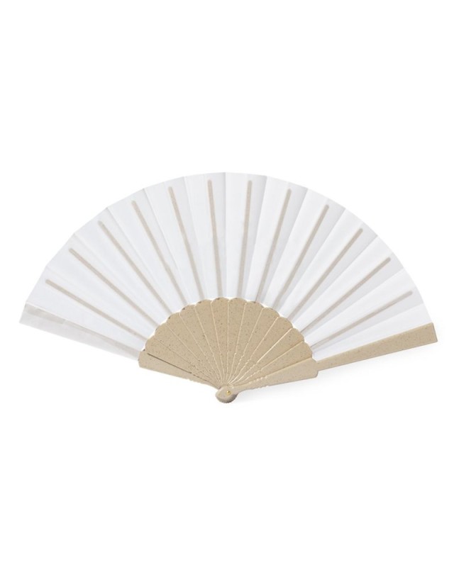Ventilatore della linea Nature, con aste in fibra di bambù e tessuto RPET, realizzato in plastica riciclata, al fine di promuovere il riutilizzo dei rifiuti di plastica e aiutare la sostenibilità del pianeta. Presentato in una confezione individuale eco design. - Lunghezza: 42.5 cm - Peso: 40 gr