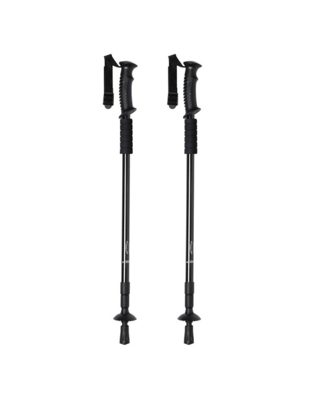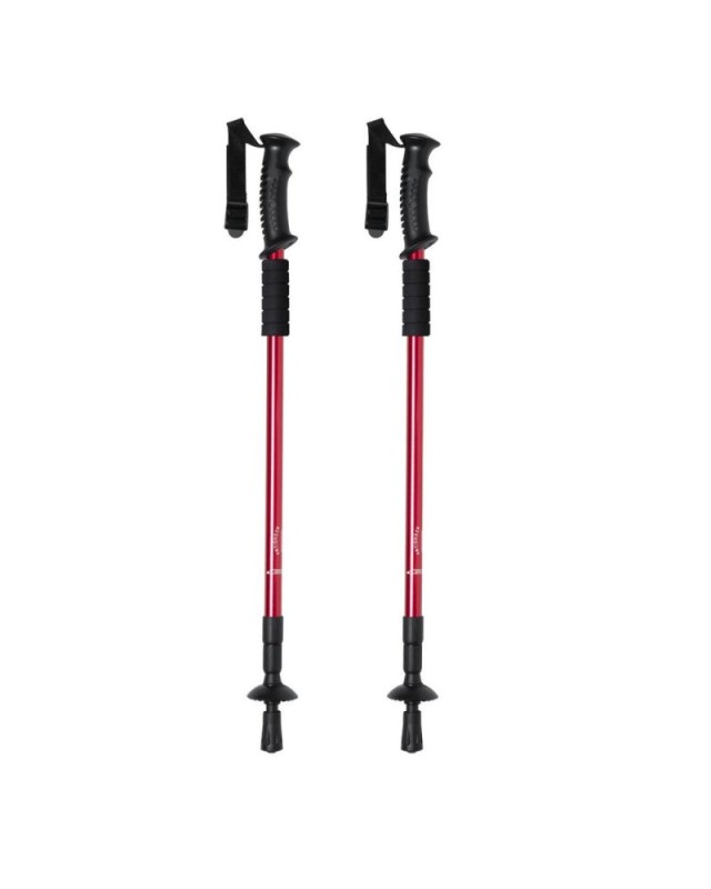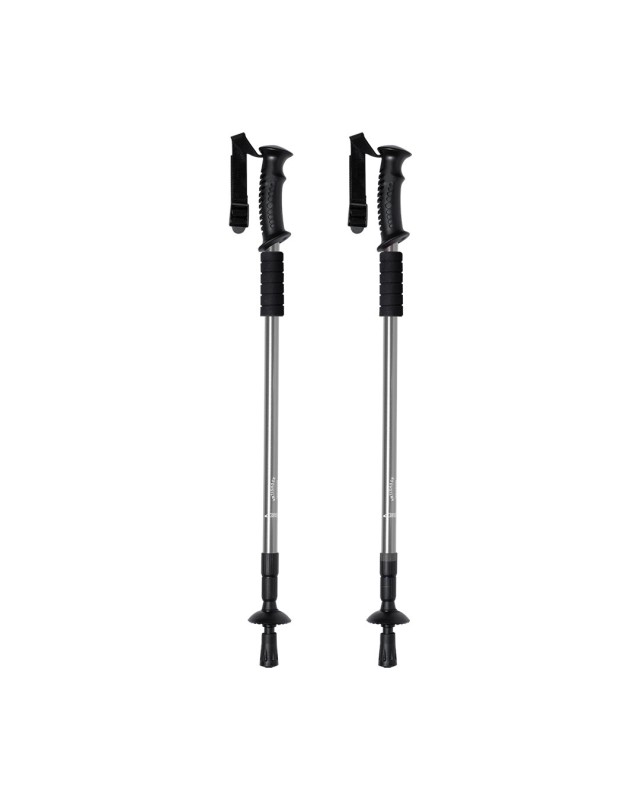 Set di bastoncini sportivi pieghevoli in alluminio resistente, con meccanismo di ammortizzazione e accessorio in morbida schiuma per appoggiare le mani. Con comoda impugnatura ergonomica, cinghia di sicurezza regolabile e accessorio da neve. Superficie di contatto del terreno rinforzata. Presentato in una borsa per il trasporto con tracolla. Canne disponibili in 3 colori. - Lunghezza: 140 cm - Peso: 610 gr