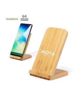 Caricabatterie wireless linea Nature con funzione di supporto smartphone. Realizzato in bambù con tagli naturali. Indicatore dello stato di carica e compatibile con dispositivi dotati di tecnologia di ricarica wireless. Ampia superficie di marcatura e presentata in unattraente scatola di design ecologico. - Lunghezza: 7 cm - Larghezza: 8 cm - Peso: 80 gr