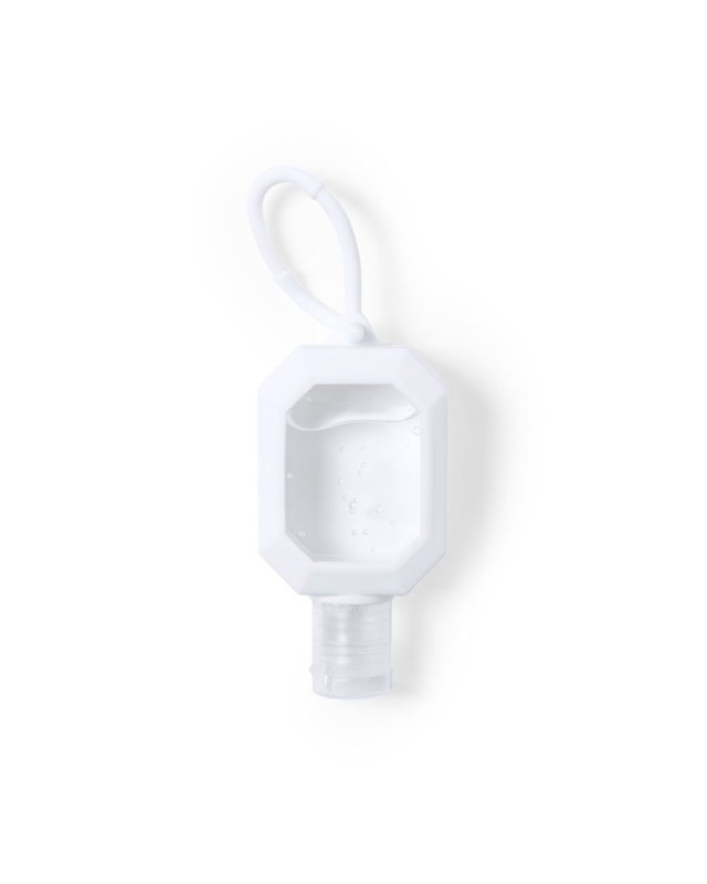 Gel idroalcolico per ligiene e la pulizia della pelle in flacone ricaricabile da 30 ml, con estratto balsamico di Aloe Vera. Flacone in morbido silicone bianco, con dispenser, tappo di sicurezza e cordone in silicone per il trasporto / fissaggio. Soluzione al 65% di contenuto alcolico.Disponibile certificazione 94/62/CE.Articolo con certificazione GMP (Good Manufaturing Practices) che garantisce ladempimento di rigorose misure di controllo per ottenere un prodotto sicuro e di qualità. - Lunghezza: 4 cm - Larghezza: 2.4 cm - Peso: 45 gr