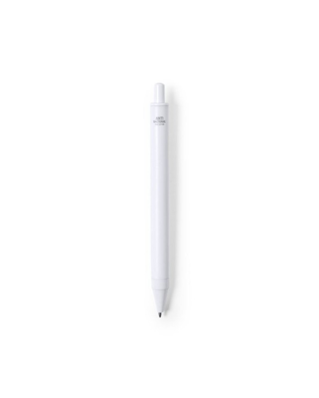 Penna antibatterica integrata con termometro nella clip. Design monocromatico, appositamente progettata per la stampa in tampografia. Refill blu e confezionata singolarmente in polybag di design.I prodotti con trattamento antibatterico sono in grado di ridurre drasticamente la carica batterica presente sulla superficie dei materiali, grazie alla presenza di agenti microbici statici permanenti, con elevata efficacia nellinibire e prevenire la contaminazione batterica.Articolo rispondente agli standard ISO 22196, che determina lattività antibatterica nei materiali plastici e nelle superfici non porose e di conoscere lefficacia dellinibizione microbica che gli additivi hanno sugli oggetti trattati attraverso una valutazione quantitativa. - Diametro: 1.1 cm - Peso: 10 gr