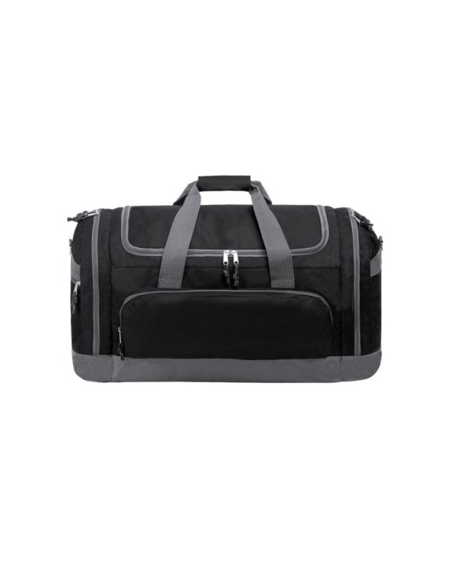 Borsa multiuso di grande capacità, in resistente poliestere 600D. Design bicolore, con base e dettagli in grigio. Scomparto principale e tasche laterali con chiusura a cerniera. Maniglie di trasporto in nylon resistente, con chiusura in velcro abbinata. Include tracolla regolabile con chiusura a moschettone e spallina di protezione abbinata. Base rinforzata. - Lunghezza: 65 cm - Larghezza: 33 cm - Peso: 960 gr
