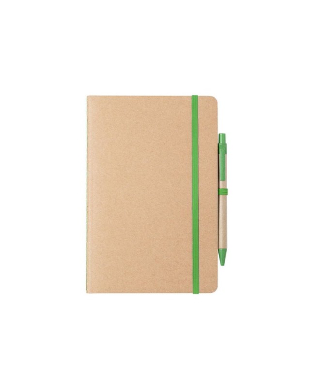 Set composto da taccuino e penna della linea Natura. Include un taccuino in cartone riciclato, con portapenne e elastico abbinato, da 60 fogli lisci. Penna con meccanismo a pulsante, con corpo in cartone riciclato e accessori in fibra di grano - refill blu-. Certificazione del materiale Fibra di Grano sulla parte superiore della penna. - Lunghezza: 15 cm - Larghezza: 0.6 cm - Peso: 130 gr