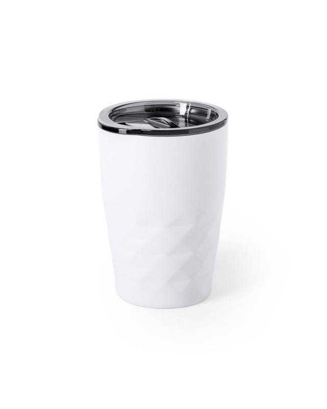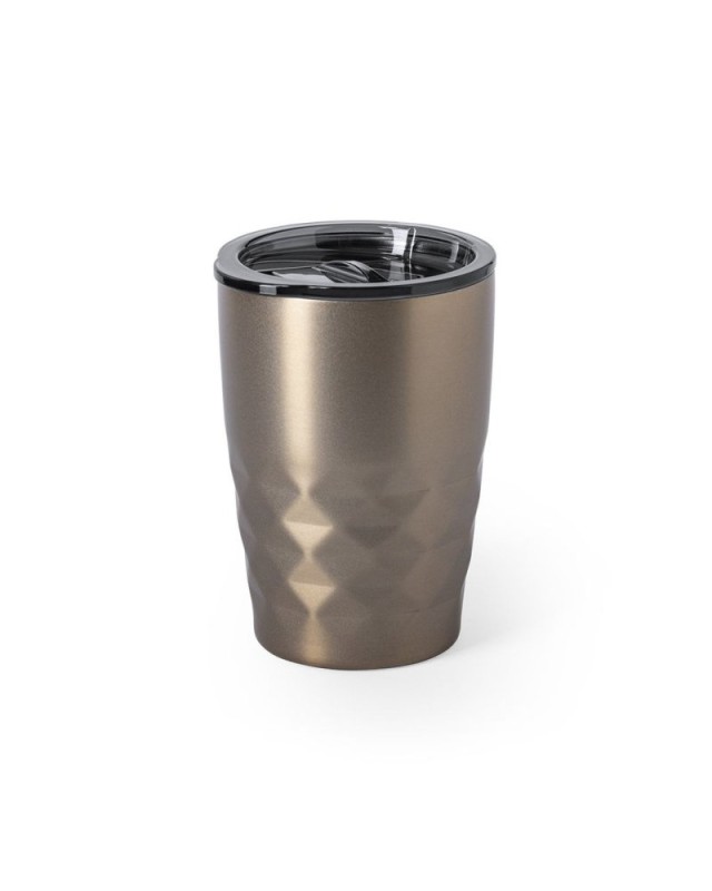 Bicchiere termico da tavolo in acciaio inox, con doppia parete e isolamento sottovuoto in rame, con una capacità di 350 ml. È ideale per la tua scrivania, tavolo o qualsiasi superficie dove puoi goderti la tua bevanda preferita. Consente di mantenere il caldo e il freddo per un tempo più lungo, rispettivamente fino a 8 e 24 ore. Include un coperchio con dispenser e apertura facilitata. - Diametro: 8.5 cm - Peso: 185 gr
