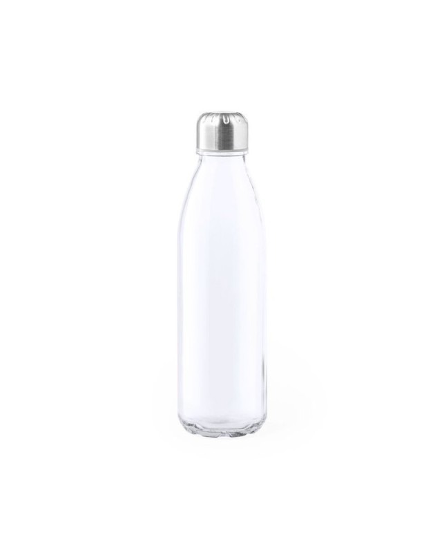 Borraccia da 650ml. Realizzata con fusto in vetro, disponibile in unampia gamma di colori, e un tappo a vite in acciaio inossidabile con finitura cromata. Confezioanta singolarmente in una scatola dal design accattivante - Diametro: 7.1 cm - Peso: 370 gr