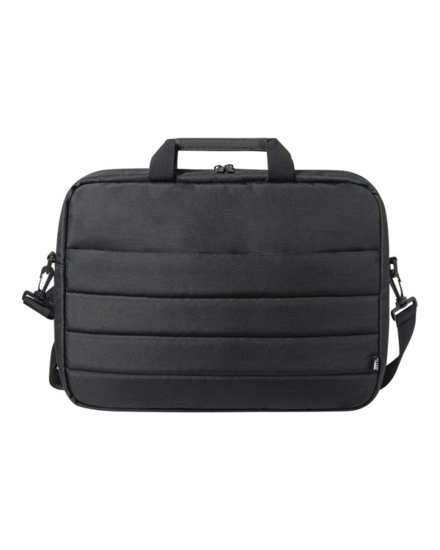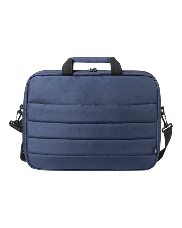 Valigetta della Linea Nature dal design urbano e imbottitura completa. Realizzata in resistente 300D RPET in plastica riciclata, per promuovere il riutilizzo dei rifiuti plastici e contribuire alla sostenibilità del pianeta. Accessorio per il montaggio del trolley, con scomparto interno imbottito per laptop fino a 15". Tasca principale con chiusura a zip e tiretto in metallo. Comode maniglie di trasporto rinforzate e tracolla regolabile, con imbottitura per le spalle e chiusure a moschettone girevoli .Etichetta RPET presente. - Lunghezza: 40 cm - Larghezza: 8 cm - Peso: 310 gr