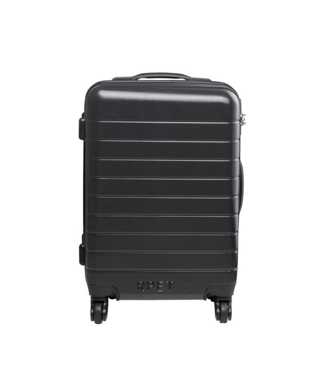 Trolley della Linea Natura resistente agli urti realizzato in materiale RPET, plastica riciclata per promuovere il riutilizzo dei rifiuti plastici e contribuire alla sostenibilità del pianeta. Maniglia di trasporto telescopica, con 4 ruote girevoli e blocco di sicurezza TSA. Fodera interna in RPET, con cinghie di fissaggio elastiche incluse. RPET inciso sul davanti. - Lunghezza: 35.5 cm - Larghezza: 23 cm - Peso: 2750 gr