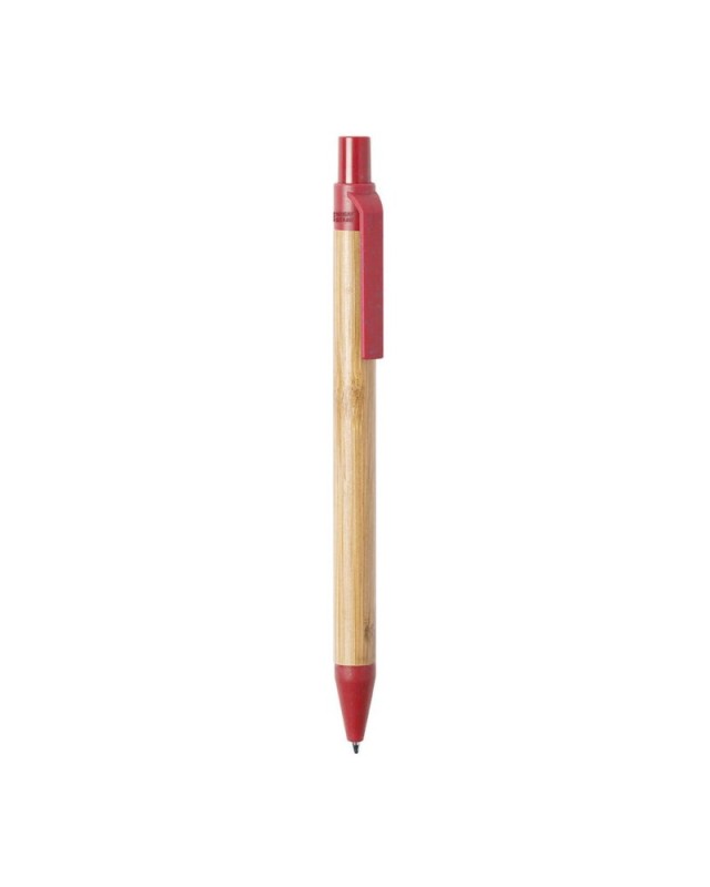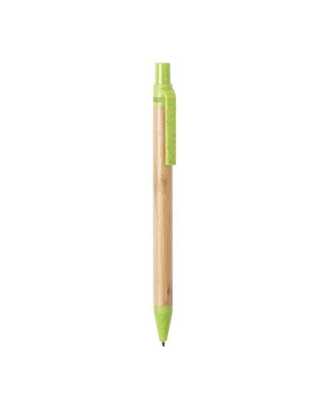 Penna della Linea Natura con meccanismo a pulsante. Fusto in bambù, con accessori in fibra di grano, per promuovere luso di materie prime Naturali e ridurre le emissioni inquinanti. Con inchiostro blu. Disponibile in vari colori. Logo della fibra di grano sulla parte superiore della penna. - Diametro: 1 cm - Peso: 6 gr