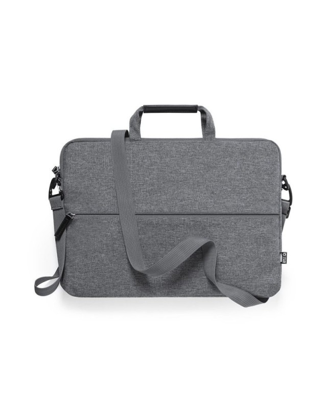 Portadocumenti della linea natura, in resistente RPET 300D effetto melange, realizzato in plastica riciclata, per promuovere il riutilizzo dei rifiuti plastici e contribuire alla sostenibilità del pianeta. Con originale porta pc integrato, tasche principali e frontali con chiusura a zip. Interno con tasca imbottita per laptop fino a 15" e tasca per tablet fino a 10". Tracolla regolabile con maniglia di trasporto rinforzata. Resistenza fino a 6 kg, con distintivo RPET sulletichetta esterna. - Lunghezza: 37 cm - Larghezza: 3.5 cm - Peso: 340 gr