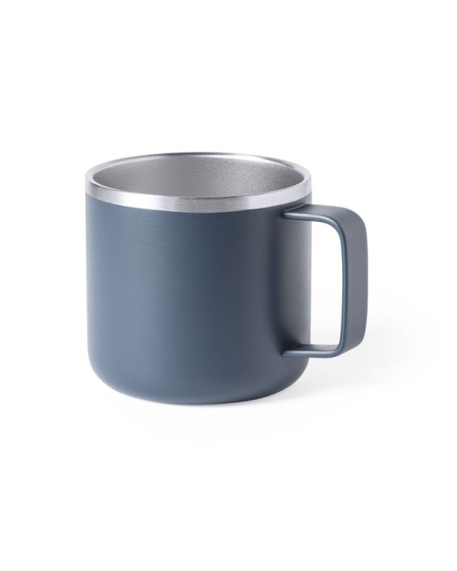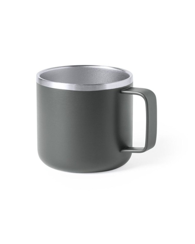 Tazza in acciaio inossidabile a doppio strato con capacità da 350 ml, in elegante finitura bicolore. Confezionata in una scatola individuale. - Diametro: 8.5 cm - Peso: 170 gr
